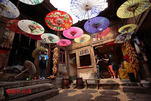 屯堡人家的日常用品花伞,日渐成为当地特色附加值高的旅游产品