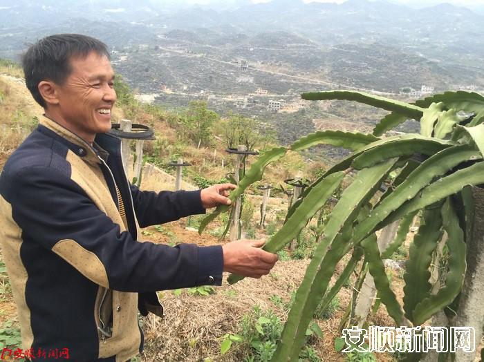 2012年关岭火龙果种植标准化示范区项目获得批准,通过3年的农业标准化建设,关岭火龙果产业初具规模,现标准化种植面积达3000余亩,受益农户从2012年的123户,增加到2015年的近1000余户。关岭火龙果的种植,不仅为当地农户找到了一条脱贫致富路,还创造了喀斯特地区的种植奇迹,石漠化治理范围得到不断扩大。3月29日,记者在关岭农业和工商部门两位同志带领下,来到关岭位于花江大峡谷的板贵乡坝山村实地了解当地村民种植火龙果情况。