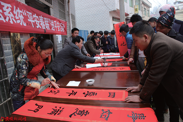 据了解,此次活动由县委政法委牵头筹备,提前印制了5000套春联纸,利用赶集之机分别到各乡镇、村寨现场为广大群众现场挥墨书写深化“平安紫云”建设工作内容的春联,免费发放给广大人民群众,全力开展深化“平安紫云”建设工作宣传,营造平安、祥和的良好氛围。