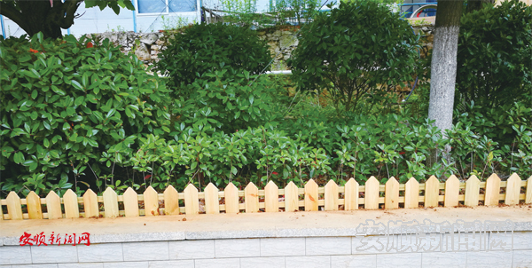 花池新安装的木栅栏
