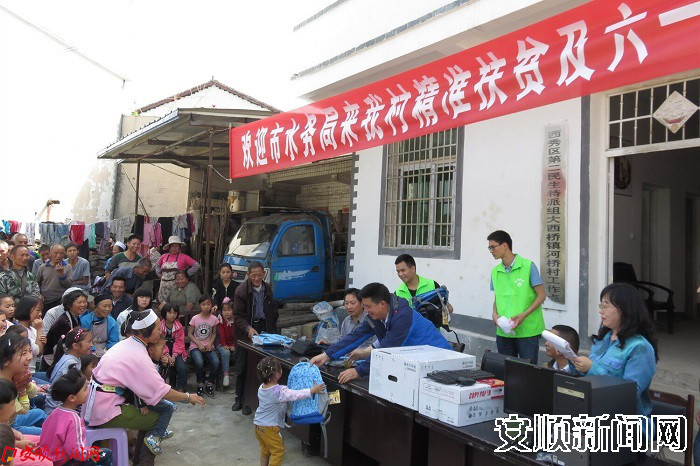 本网讯 5月29日,西秀区大西桥镇河桥村村委办公室前,河桥村的留守儿童及计生三结合帮扶儿童欢聚一堂,领取了崭新的书包和学习用品。市水务局到河桥村开展精准扶贫及六一节慰问活动,践行“两学一做”,关爱留守儿童,为他们送去节日的问候和祝愿。
