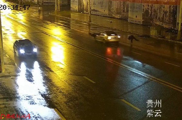交警随后调取了事发路段的监控视频。监控画面显示,20时34分37秒,杨某夫妇横穿马路时,一辆银灰色轿车从前方疾驰而来,二人躲闪不及,一人被撞倒路边,一人被撞飞出四五米开外,但由于车速过快,无法看清车辆号牌。