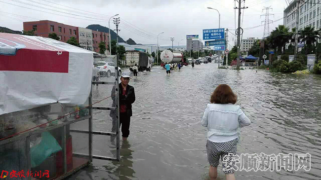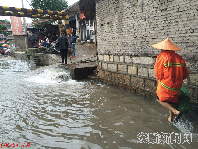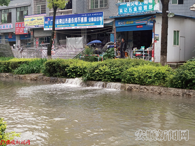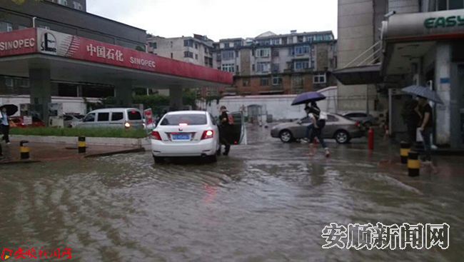 安顺市黄果树大街路段的麒麟小区路段、九中路段、两六路路段、北航路碧水园路段、西王山路段、西航路花牌坊路段、西秀区检察院路段等受暴雨的影响,积水较为严重。
