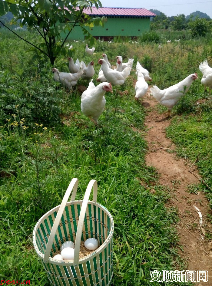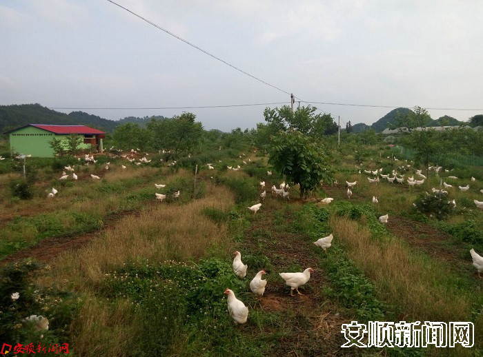 在农信资金的支持下,西秀区扬武乡猛帮村文才种养殖农民专业合作社发展林下生态蛋鸡养殖。
