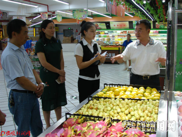 督导组一行听取了各县农村食品安全治理工作的情况汇报,并对镇宁自治县、关岭自治县和紫云自治县的大型超市进行了现场检查。督导组对超市环境卫生治理、从业人员健康管理、仓储区食品摆放、食品添加剂使用规范、超市食品进货查验、食用农产品经营主体责任及监管情况进行了实地检查,并对检查中发现存在的问题提出指导意见。