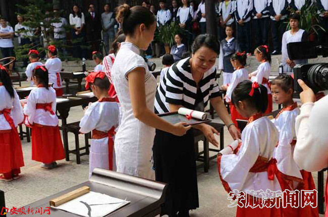 本网讯(见习记者 任丽嘉)9月12日,在普定县文庙内举行了“尊崇礼仪、书博古今、传承能量”开笔礼,刚入学的一年级新生体验了别开生面的开学第一课。