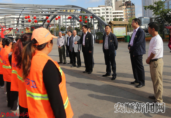 本网讯 10月26日是贵州省第十九届环卫工人节,市人大常委会主任山林、副主任王跃赴平坝区高烟坡山体公园、平安广场垃圾转运站看望慰问一线环卫工人,给他们送去了慰问金,并通过他们向一直以来辛勤劳动、默默奉献的全市广大环卫工人致以最诚挚的问候和崇高的敬意。