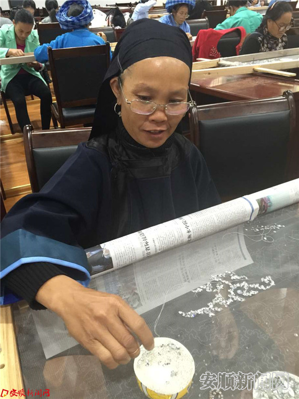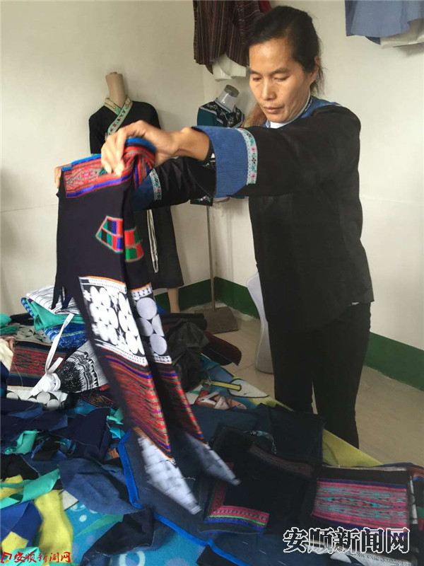 一起来参加此次刺绣培训的布依妇女鲁尚美,是关岭顶云石板井村人,今年已46岁,大的孩子已上大学,小的一个还在上初中,她此次已是接受第二次关岭“锦绣计划”培训。自去年第一次接受培训后,她回到家,就利用自家房子投资3万多元办了一个布依服饰农家作坊,她销出的服装都是客人上门定做。目前她的作坊请了3个人,经营情况还不错。2015年她的作坊创收近5万元,今年参加培训后,她想扩大作坊生产规模,生产的产品多元化一些。