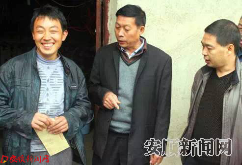 沙营镇交界村村民张发庆开心地领到被侵占的1000元危房补助款