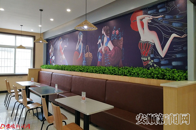 2月24日,记者乘车在板当匝道上惠兴高速沿紫云方向走去,一路上透过车窗远望,秀美山川、乡村美景尽收眼底,道路边除偶有几块有关坚决打赢脱贫攻坚战等积极向上的标语牌外,没有杂乱五脏的广告牌。车行至紫云服务区,十余辆大客整齐地停靠在服务区停车场上,在服务区溜达一圈发现,服务区餐厅、超市、休息室等区域干净整洁;餐厅里面还有蜡染、苗族刺绣等民族特色的装扮,室内吊灯上的灯罩形如亚鲁王歌诗的帽子,这些都颇具地方民族特色。