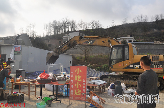 本网讯 近日,普定县组织消防、住建等部门,铁腕拆除白岩镇白旗新村安普大道旁聚氨脂泡沫夹心彩钢板临时建筑。