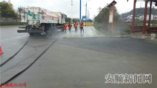 开发区城管局监察执法大队组织30名执法队员,采取徒步巡查、定点值勤等方法,对三合苗寨广场及周边的市容秩序开展整治,整治行动采取宣传劝导的方式,对经营户占道经营、店外延伸、伸棚打伞、流动摊贩、车辆乱停乱放人行道等违规行为进行专项整治。城管局环卫处组织50余名环卫工人,10辆环卫清洁车,对活动道路两侧及三合苗寨广场进行冲洗,对活动沿线(线路:大广场→环自行车道→养老中心→文化长廊→山体公园→山体公园小广场→山体公园占道→三合苗寨广场)的环境卫生进行清扫保洁,确保整洁干净。并实行定岗、定人、定责管理,科学合理调配环卫工人和机械,实行无间隙巡回清扫保洁和快速保洁机制,为活动的举办提供洁净、靓丽的卫生环境,营造良好的节日氛围。