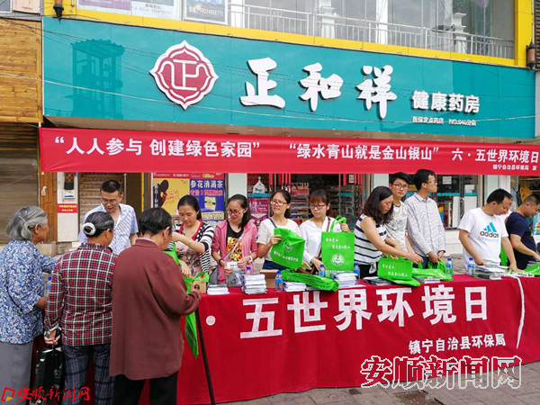 本网讯 今年6月5日是第46个“六•五”世界环境日。围绕“人人参与 创建绿色家园”“绿水青山就是金山银山”的主题,镇宁县环保局在小广场开展了宣传活动。