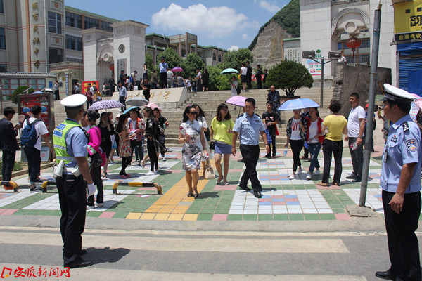 民警在安顺市民族中学考点前为高考考生保驾护航