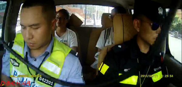 民警护送两位考生前往五中考点途中(执法记录仪拍摄)