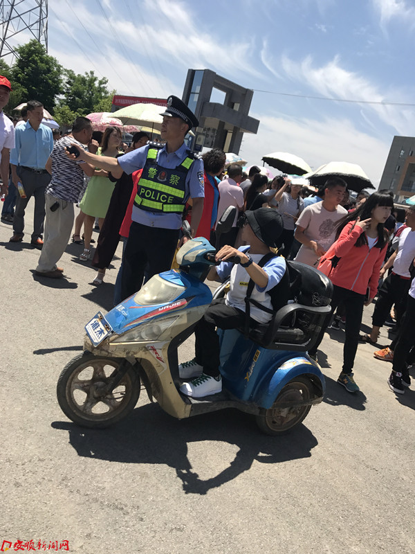 当天,在平坝第一高级中学和集圣中学两个考点,到处可以看到贴有爱心车标志的出租车、轿车还有大型客车在免费接送学生,同时,在考场外,来自各行各业的社会爱心人士设立了“爱心免费饮水点”、遮阳帐篷、板凳等,向考生及家长免费提供矿泉水、文具、雨伞等必备物品,为学子们“圆梦”极力提供各种方便;另外交警和民警们正在全力疏导交通,保证送考车辆停放有序。同时,开辟了高考外围绿色通道,及时维护指挥疏导,确保道路安全、畅通,全力助力高考。