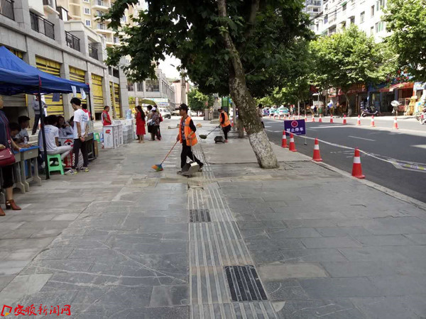 高考期间,西秀区环卫处全员上岗,各环卫所将凌晨班清扫、清运时间提前半个小时,以确保清晨7点以前完成普扫工作;调整直属车队所有的洒水车、道路清洗车辆,根据天气和路段实际情况调整作业时间,关闭作业音乐,避免噪音扰人,为莘莘学子营造一个舒适、整洁、安静的考试环境。