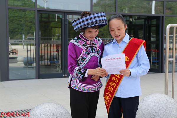 关岭自治县国家税务局青年干部向纳税人宣传最新政策法规