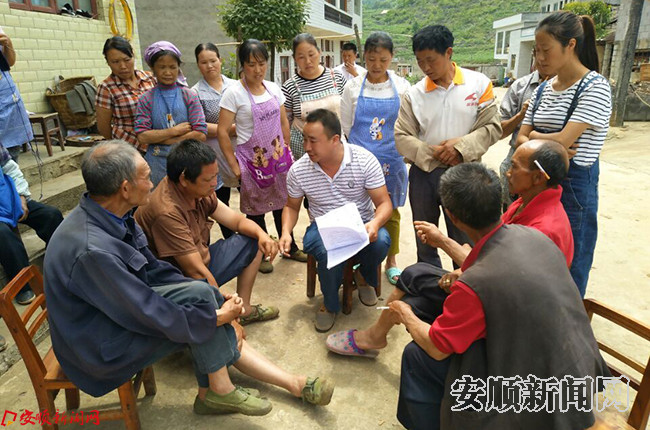 在洛麦组一个农家院坝,驻村干部与村民围在一起召开“院坝会”,会上首先对每户人家的家庭基本情况,包括文化程度、家庭收支情况、经济来源、生活生产情况等进行详细的了解,并作好记录;其次是驻村干部认真听取群众的意见和建议,了解群众的心声;最后,大家对如何发展产业脱贫致富,如何加强基础设施建设,改善生活生产环境等问题进行同商讨。