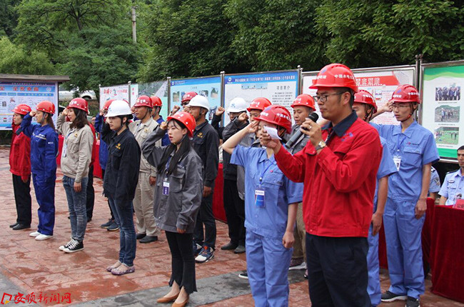 “为了个人的安全健康,为了家庭的幸福美满,为了企业的和谐发展,我承诺:忠诚企业,恪尽职守,珍惜生命,创建‘平安工地’。我检查做到:遵守规章制度,遵守规范规程……” 在活动中,项目建设单位代表郑重地向发出“安全宣誓”。