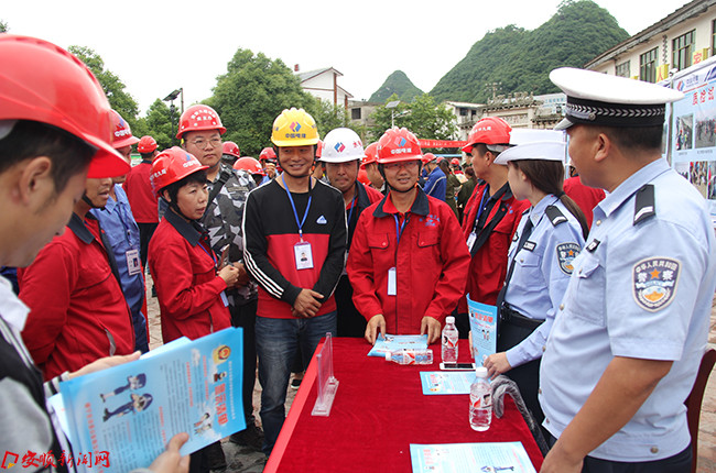 本网讯 6月16日上午,安顺市交通投资有限责任公司组织黄埔至幺铺大道、关花大道、宁龙黄公路项目人员,在贵安大道镇宁段开展2017年“安全生产月”咨询日活动。