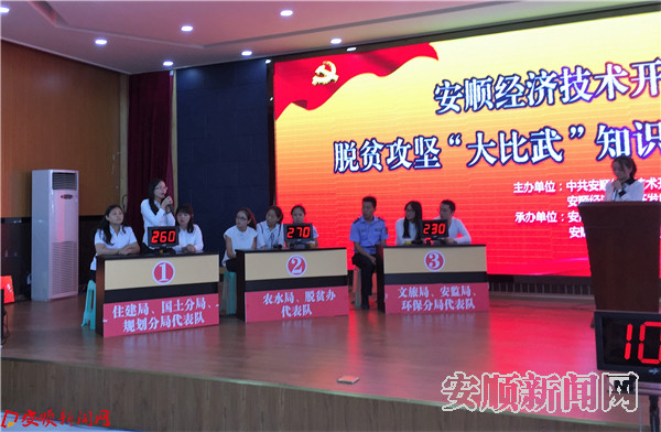 据了解,此次活动由开发区工管委主办,开发区脱贫攻坚工作领导小组办公室、宣传部、群团工作部承办。活动分为知识竞赛和理论考试两环节组成,其中知识竞赛分为预赛和决赛。在决赛现场,参赛选手们沉着应战,熟谙脱贫攻坚知识与政策,经过必答、抢答以及风险题等环节的激烈竞赛,由住建局、国土分局、规划分局组成的代表队拔得头筹。在精彩的比赛过程中,让参赛队员与现场观众进一步理解和学习到脱贫攻坚相关知识。