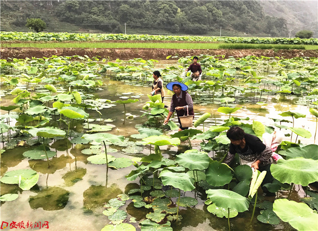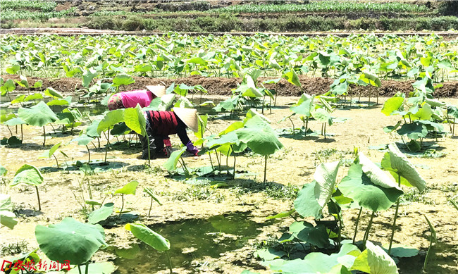 据悉,天地人和公司将羊场、磊垮、安湖三个村的5000亩土地整合流转,发展莲藕产业园。农民不仅能在年底拿到每亩800元的分红,还能在家门口就业,惠及农户1105户,4213人,其中贫困户145户。