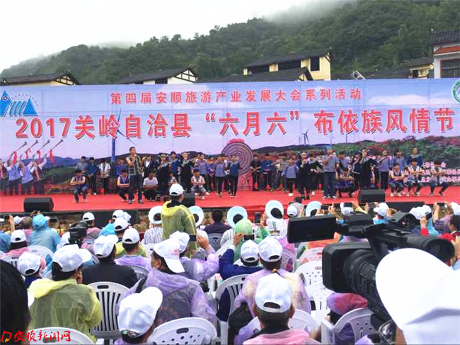 当天来自广西、云南、惠水、贞丰、镇宁等地的布依族同胞也来到了关岭欢度“六月六”。在活动表演现场,欢快的布依舞蹈和悠扬的布依山歌,充分展现了布依人民独特的生活面貌和欢乐奔放的精神内涵,一个个具有民族浓郁风情的精彩节目赢得了现场观众们阵阵掌声。