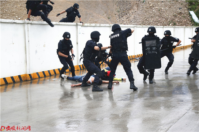 本网讯 为迎接党的十九大召开,为进一步提高多警种联合快速处置能力,保一方平安,有效处置各类公共安全突发事故,保证社会治安大局稳定。6月30日,安顺市公安局西秀分局举行多警种联合反劫持演练行动。