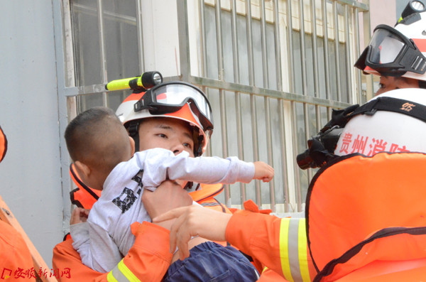 为尽快撤离群众,消防官兵在住户阳台上架设疏散楼梯,然后引导被困群众安全撤离。目前,该地段水位已退,群众日常生活逐渐恢复正常。(紫云自治县消防大队 吴知望)