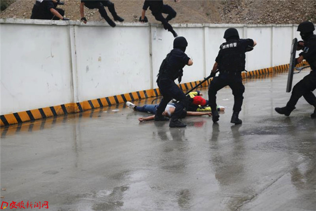 本网讯 为迎接党的十九大召开,为进一步提高多警种联合快速处置能力,保一方平安,有效处置各类公共安全突发事故,保证社会治安大局稳定。6月30日,安顺市公安局西秀分局举行多警种联合反劫持演练行动。