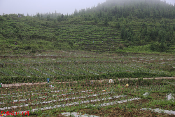 7月5日,安顺市委宣传部以“喜迎党的十九大·脱贫攻坚大比武”为主题的采访活动第一站,来到顶云街道办事处新场村猕猴桃开发产业园区,尽管天空飘着小雨,可抵挡不住农民们干活的热情,只见栽种猕猴桃的地里人头攒动,30多名农民正在地里忙着除草施肥。