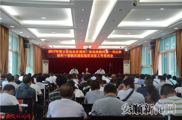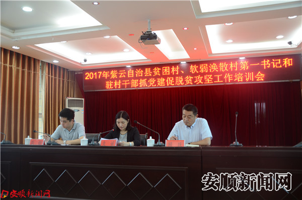 7月21日,为全面贯彻落实中央和省委、市委、县委关于深度贫困地区脱贫攻坚工作的新精神、新要求,进一步总结提升党建扶贫和第一书记选派工作,紫云自治县对省直部门单位和县直部门单位选派到贫困村、软弱涣散村驻村第一书记及县直部门单位选派的驻村干部开展专题培训,增强驻村第一书记和驻村干部工作能力和帮扶水平,为坚决打赢脱贫攻坚战提供坚强组织保障。