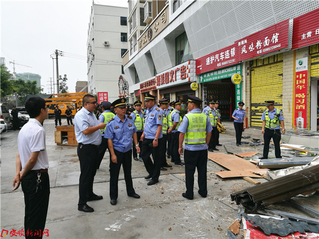 本网讯 8月2日上午,由西秀区政府牵头,西秀区城管局、区公安分局、东关办事处、区两违办、区司法局联合执法,组成100余人行动组,依法对东二环路沿街商铺私搭乱建实施强制拆除。
