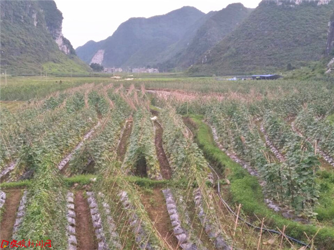 一个个小瓜挂在棚架,一根根豇豆排掉藤间,一根根瓜苗开花结果,一条条四季豆显露叶间?一片片稻田变为菜园。这是记者在紫云县猫营镇牛场克吗组蔬菜基地看到的场景。