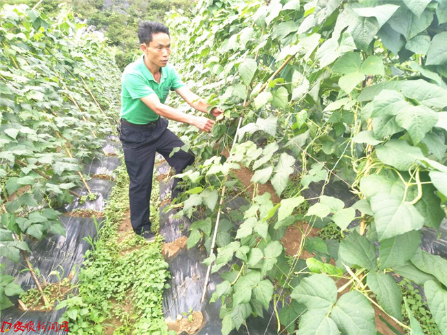 “这豇豆是今年4月种植的,7月初九开始采摘卖钱了。”克吗组村民万友福说,这片蔬菜园是他们一起在外打工多年的5位同村人共同发展起来的,他们在广东的大型菜场打工多年,其中韦洪彪、王平、童永顺在广东一带的大型菜场干了28年,从普工工人干师傅、主管,他和王继也在广东大型菜场干工也有10余年。