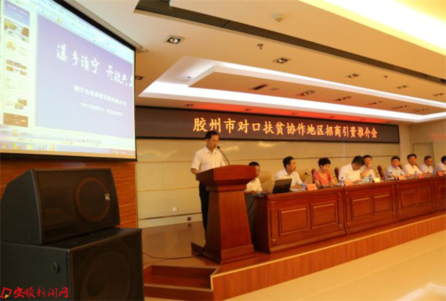 本网讯 8月3日上午,青岛胶州市对口扶贫协作地区招商引资推介会在该市行政服务中心会议室举行。由胶州市委、市政府“牵红线”,为胶州企业与贵州镇宁自治县等地“做媒”,进一步深化与镇宁等扶贫协作县的产业交流与合作。贵州省镇宁自治县、甘肃省徽县、陕西省宁陕县、山东省曹县等四个扶贫协作县,胶州市13家企业行业协会,和来自外资、电商、餐饮、商业、粮油加工、纺织、家具、蔬菜水产等14个行业的150家胶州企业参加推介会。