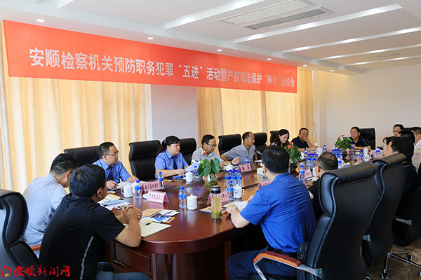 本网讯 8月9日,安顺检察机关2017年度开展预防职务犯罪“五进”活动暨产权司法保护“两长”座谈会在西南国际生态石材交易博览中心举行。