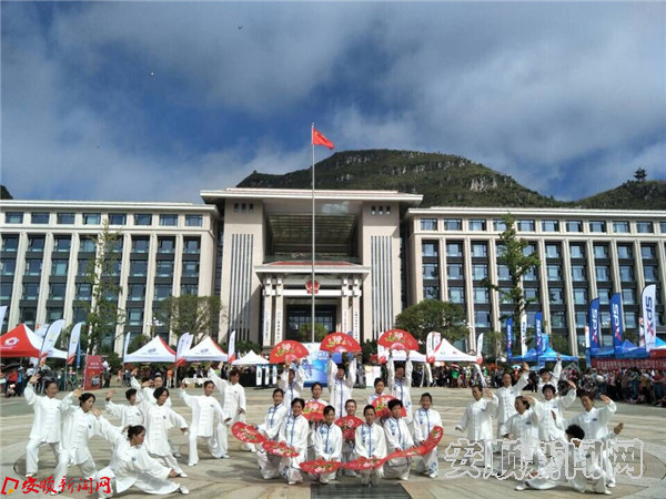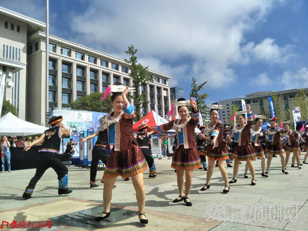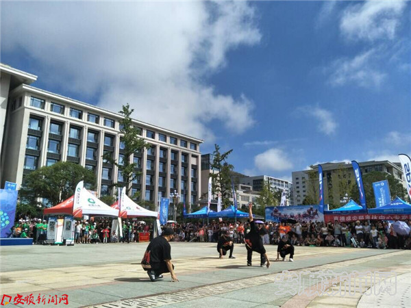 本网讯 9月17日,2017环中国国际公路自行车赛·安顺赛段嘉年华活动在驼宝山广场盛大启幕。此次嘉年华活动由安顺城市展示区、自行车文化展示区、赞助商展示区、表演区等区域构成,在大赛倡导绿色出行新风尚的基础上,开展丰富的体育文化艺术活动,使全民共享文娱盛会。