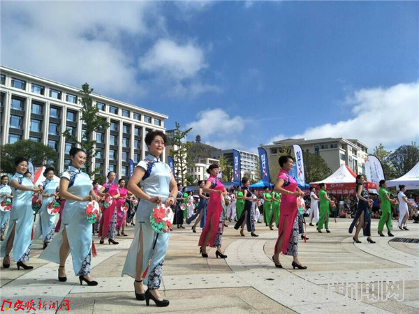 伴着浓郁的贵州民族音乐,款款走来的是安顺文化志愿者,她们身着蜡染、丝绸等各色旗袍,以素雅的色调、优美的纹样、丰富的文化内涵,带来《云上贵州》风情旗袍秀,在千般寓意、万种风情的隐语式文化符号中,演绎着“流光溢彩山水画,云蒸霞蔚朦胧诗”的唯美民族风。