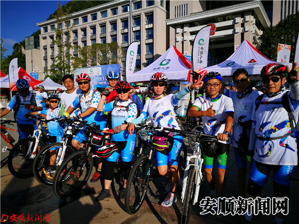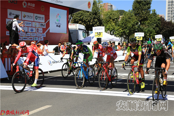本网讯 9月17日的安顺,天朗气清,惠风和畅。西秀区行政中心驼宝山广场早早便热闹起来,8:30业余自行车赛开始,9:30群众骑行开始,10:20荣誉骑行开始。11:20,2017环中国国际公路自行车赛·安顺赛段赛事随着发令枪响,鸣锣开骑。