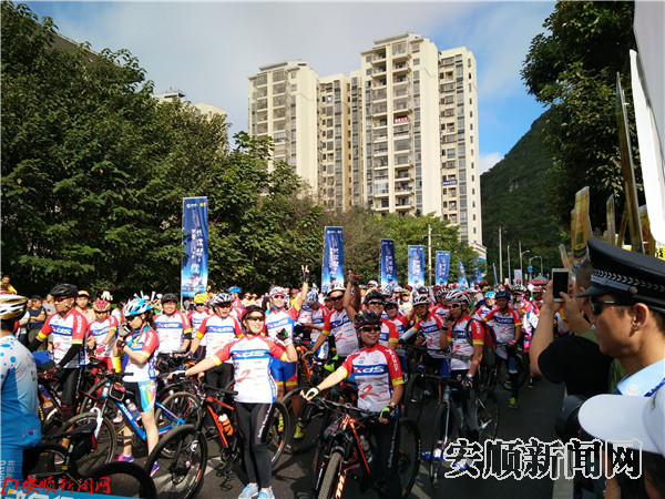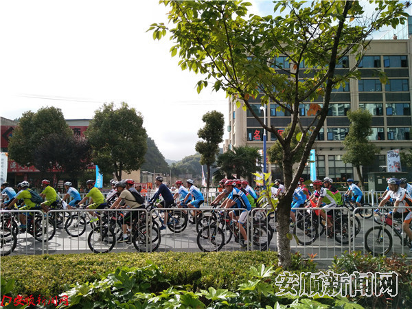 9月17日,2017环中国国际公路自行车赛·安顺赛段在驼宝山广场准时开赛,国际赛事的举行激活了这座小城运动的热情,许多市民纷纷加入到群众骑行的体验活动中,感受国际赛事气氛。上午9点30分,600余名群众骑手在驼宝山广场准时出发。