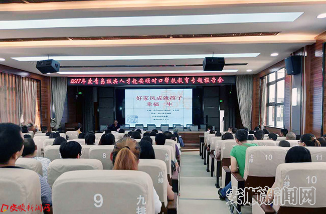 本网讯 9月18日, 青岛市拔尖人才赴安顺对口帮扶教育专题报告会在市实验学校举行。