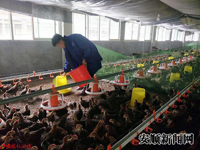 年仅20岁的黄长露,在他三岁时父亲离世,母亲聋哑残,16岁初中毕业后外出浙江打工。今年春节回家,得知家乡有建家庭农场的扶贫好项目,该项目需要参评本地能做事、想做事、做成事的能人来带动发展,他报名参评后,经过镇政府和紫云德康公司的多方考察,确定年轻有为的黄长露可胜任,便让他来负责打彩村1号肉鸡家庭农场的喂养管理。