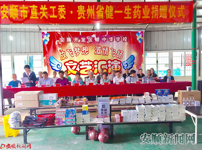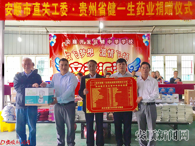 本网讯 9月21日,清脆的铃声唤醒了校园,也迎来了远方的“爱心人士”。市直关工委携手贵州省“健一生”药业连锁有限责任公司向开发区精中华学校捐赠了价值18000余元的物品,包括常用药品、常用医药器材、课外书籍、体育用品。市直关工委副主任柯云龙同志则个人向学校捐赠了价值3000元的次氯乙酸发生器。