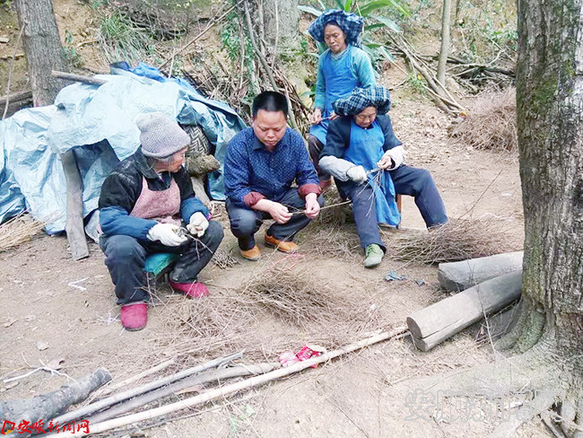 伍长坤(中)正在教群众育苗解决旗山在家闲散妇女及老人的务农本领