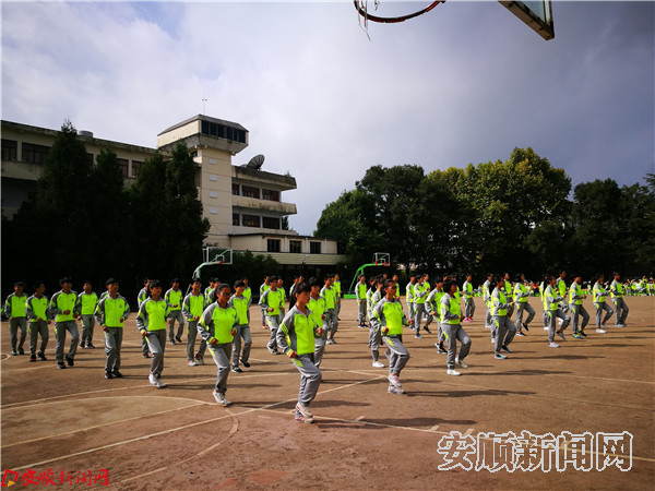 本网讯 9月22日,安顺学院附中校园内朝气蓬勃,1000余位学生在老师指导下开展新生军训会操和韵律操表演活动,校园内荡漾着青春的气息,展现了学生们昂扬向上的精神和青春的活力。