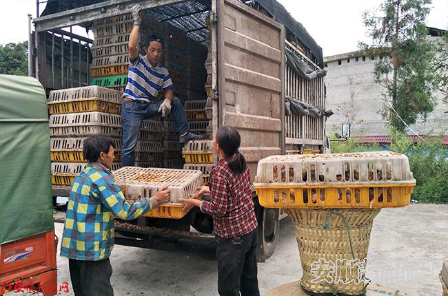 “来啦……来啦……”!关岭自治县永宁镇白岩村村民脸上露出灿烂的笑容。9月28日,由市政务服务中心购买价值5万余元的鸡苗运抵帮扶村白岩村,为贫困户进行免费发放。
