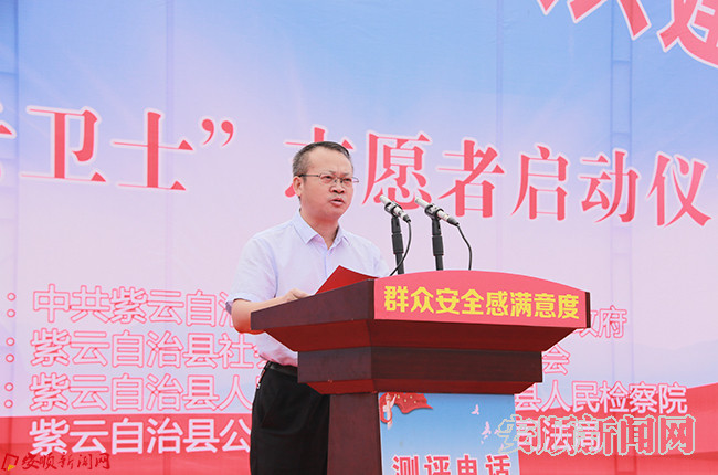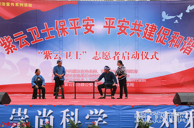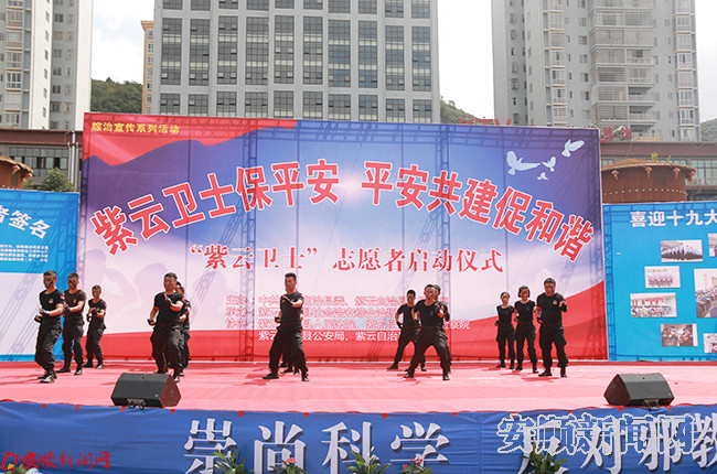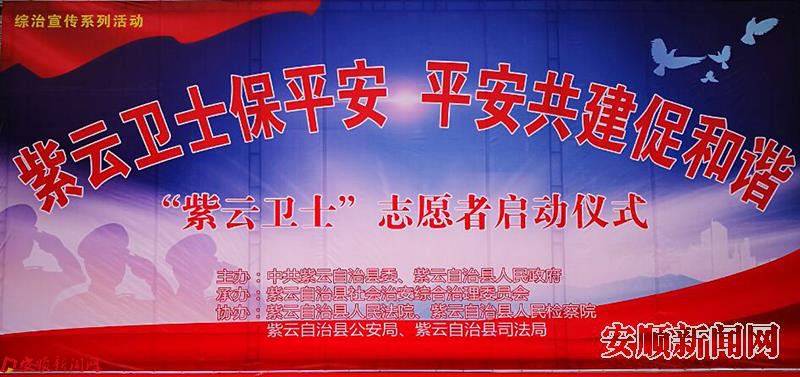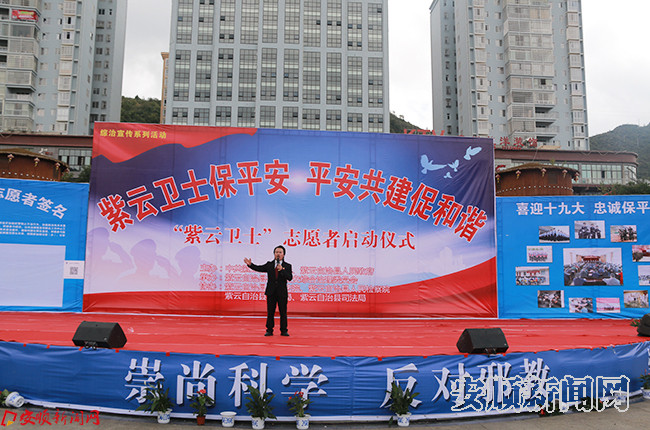 9:10【安顺新闻网】 此次活动的主题是:紫云卫士保平安·平安共建促和谐。活动号召全县群众加入到“紫云卫士”志愿者行列,成为“平安紫云”建设的实践者和宣传者。