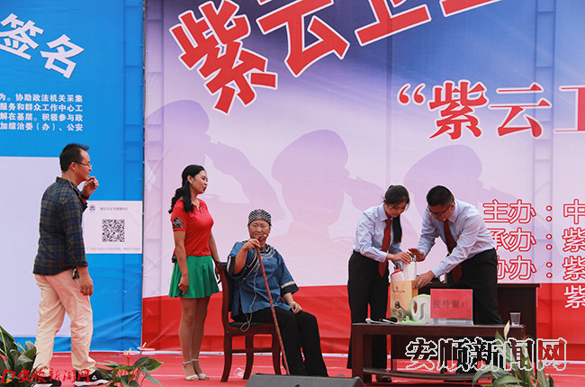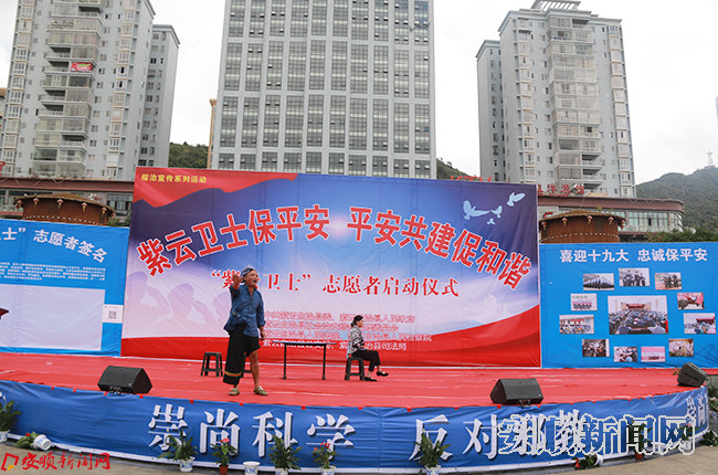 12:10【主持人】尊敬的各位领导、同志们,亲爱的父老乡亲、现场的观众朋友们,再次感谢您及家人光临九月综治宣传月文艺演出暨“紫云卫士”志愿者启动仪式宣传活动现场。